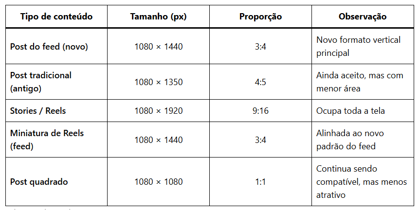 - Tags: carrossel instagram, formato vertical 3x4, guia instagram marketing, novo tamanho instagram, post 1080x1440, proporção post instagram, redes sociais 2025, tamanho feed instagram